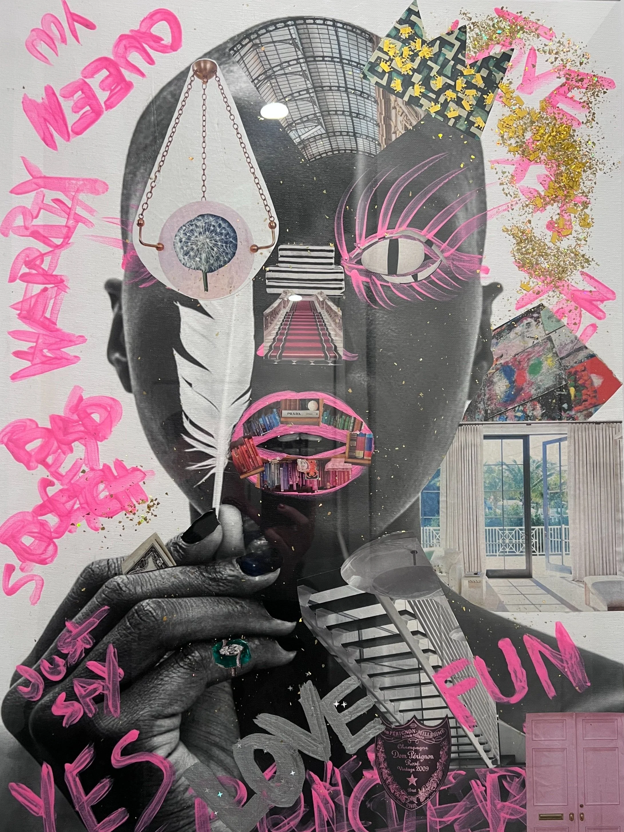 What began as the creation of my first ever “vision board” in January of 2024 has slowly morphed into what has become a true passion. I’ve always appreciated the aesthetics and intrigue behind visual art but now find that I, myself, am an artist. As a natural story teller, I am now able to tell stories of human emotion and experience through mixed media collages that unfold as each element is added. I